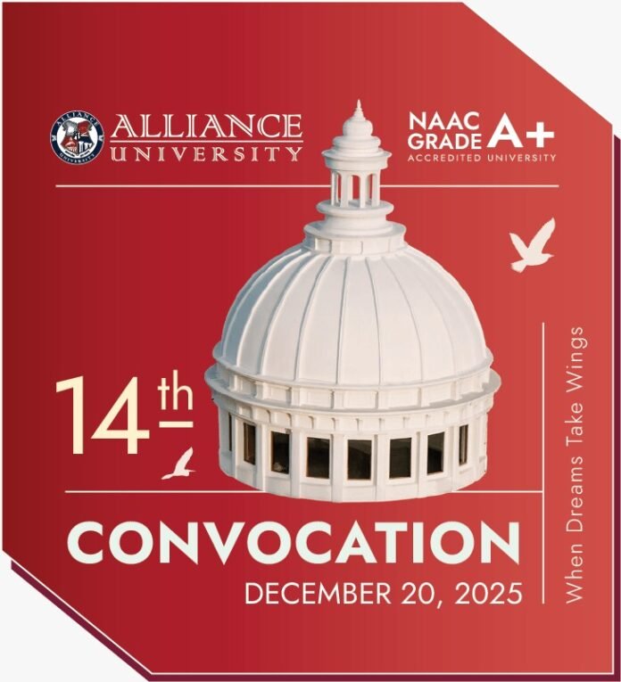ನ್ಯಾಕ್ (NAAC) ವತಿಯಿಂದ A+ ಮಾನ್ಯತೆ ಪಡೆದ ಅಲೈಯನ್ಸ್ ವಿಶ್ವವಿದ್ಯಾಲಯವು ತನ್ನ 14ನೇ ಪದವಿ ಪ್ರದಾನ ಸಮಾರಂಭವನ್ನು ಶನಿವಾರ, ಡಿಸೆಂಬರ್ 20, 2025ರಂದು ಬೆಂಗಳೂರಿನ ಕೇಂದ್ರ ಕ್ಯಾಂಪಸ್ನಲ್ಲಿ ಆಯೋಜಿಸಿದೆ.