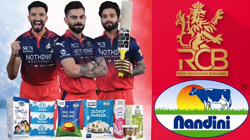 ಬೆಂಗಳೂರು, ಮಾ.25: ಕರ್ನಾಟಕದ ಹೆಮ್ಮೆಯ ‘ನಂದಿನಿ’ ಉತ್ಪನ್ನಗಳ ಪ್ರಚಾರಕ್ಕಾಗಿ ಕರ್ನಾಟಕ ಹಾಲು ಮಹಾಮಂಡಳಿ (KMF) ಐಪಿಎಲ್ನ ಜನಪ್ರಿಯ ತಂಡ ರಾಯಲ್ ಚಾಲೆಂಜರ್ಸ್ ಬೆಂಗಳೂರು (RCB) ಜೊತೆ ಮಹತ್ವದ ಒಪ್ಪಂದ ಮಾಡಿಕೊಂಡಿದೆ. ಈ ಒಪ್ಪಂದದಡಿಯಲ್ಲಿ ತಂಡದ ತಾರಾ ಆಟಗಾರರಾದ ವಿರಾಟ್ ಕೊಹ್ಲಿ, ರಜತ್ ಪಟಿದಾರ್ ಹಾಗೂ ದೇವದತ್ ಪಡಿಕಲ್ ಅವರ ಭಾವಚಿತ್ರಗಳನ್ನು ನಂದಿನಿ ಉತ್ಪನ್ನಗಳ ಪ್ಯಾಕೇಜಿಂಗ್ ಮೇಲೆ ಬಳಸಲಾಗುತ್ತದೆ.